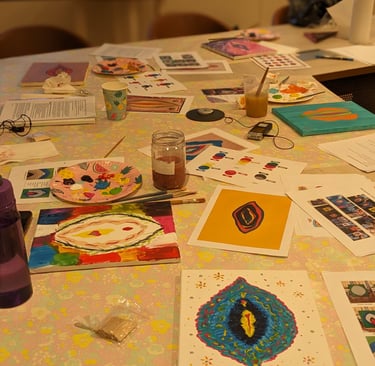 This became valuable in two ways: first, it encouraged a natural conversation around what they were drawing – for example, if they were currently focusing on the labia minora, it enabled the women to talk about their feelings and experiences revolving around this feature. Second of all, it also helped them distance themselves emotionally from the discussion if needed, by focusing instead on their paintings.